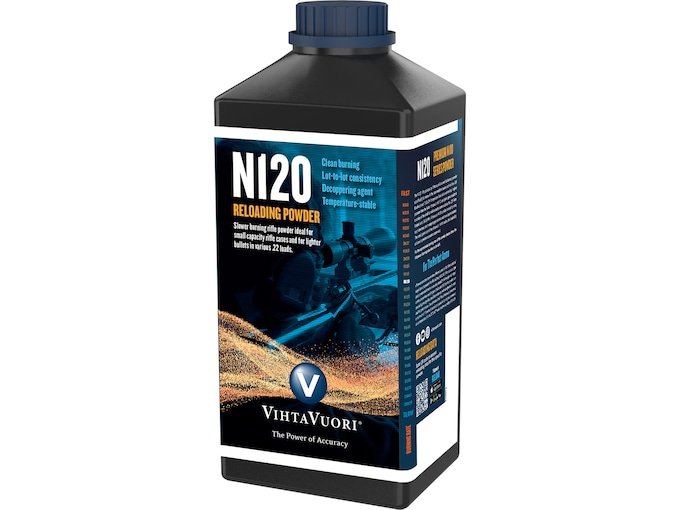 ÂThe N120 rifle powder by Vihtavuori works great in small calibers with light bullets and in short barrel rifles, especially in .222 Remington and 7,62×39. Formerly known as N 21, the powder is well-known and used also by the Finnish Army. The burning speed of N120 is fast in the scale of rifle powders, slightly slower than that of the N110. Vihtavuori N120 needs higher pressure than N110 in order to optimize the burning. The grain size is actually the smallest in the Vihtavuori rifle powder family: only 0,8 mm length and 0,6 mm diameter. As with other small sized powders, this makes the loadability and use in powder measures super easy. Vihtavuori N120 gunpowder is used by many sport shooters, short-range target shooters and small game hunters.